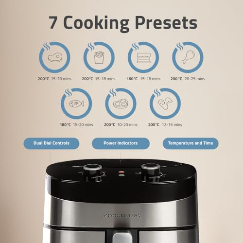 Cookology CAF72MA Air Fryer Oven 7.2 Litre, 7 Cooking Functions, Easy To Use Dial Controls, Healthy, Oil Free and Energy Saving Air Fryers – In Stainless Steel