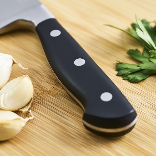 - Stylish Bamboo Knife Block Included: This 6-piece knife set includes a premium bamboo block that keeps your knives organised and easily accessible while protecting their sharpness. The natural bamboo finish complements any kitchen décor, combining functionality with aesthetic appeal.