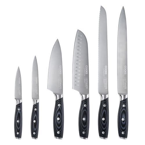 Cooks Professional Ultimate 6 Piece Knife Set | with Glass and Bamboo Knife Block| Micarta Handle | German Steel | Chef | Home Kitchen
