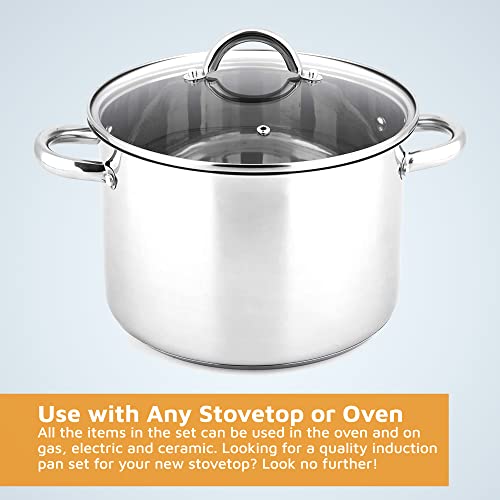 - USE WITH ANY HOB OR OVEN – All the items in the set can be used in the oven and on gas, electric, ceramic, solid state and induction hobs. Looking for a quality induction pan set for your new hob? Look no further.