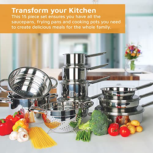 - 15 PIECES OF COOKWARE TO TRANSFORM YOUR KITCHEN – This set of essential pots and pans has been carefully curated to ensure you have all the saucepans, frying pans and cooking pots you need to create delicious meals for the whole family.