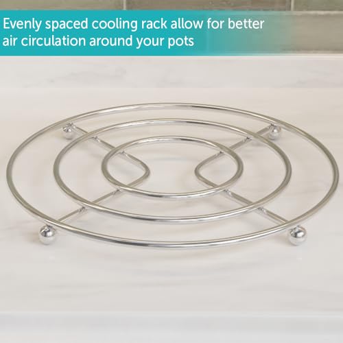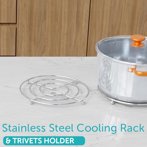 Cooling Rack Round Metal Trivet for Hot Pots and Pans, Chrome Wire Steaming Stand with Non-Slip Feet, Heat Resistant Cooking Rack for Kitchen Worktops, Tables, Oven to Tableware Protection