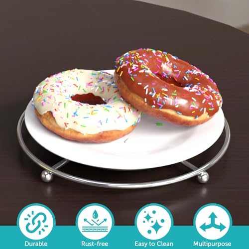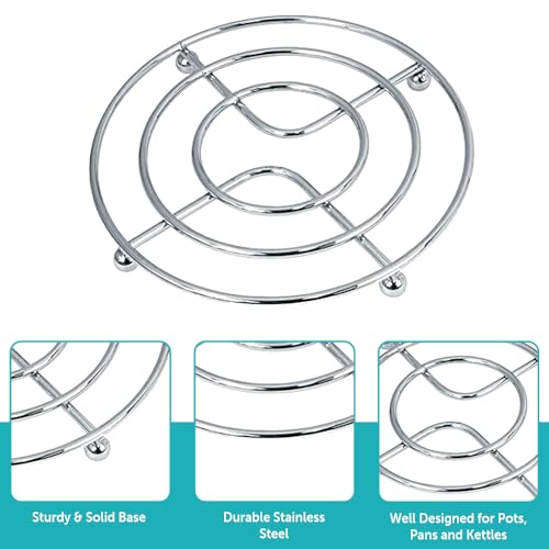 - 🍰SMART DESIGN: This strong, durable, and eye-catching circular chrome trivet will protect your kitchen surfaces.