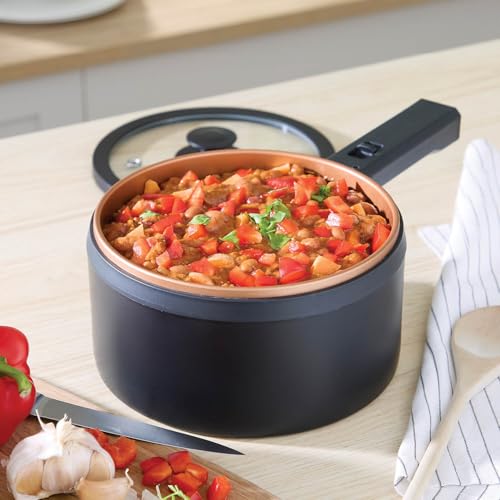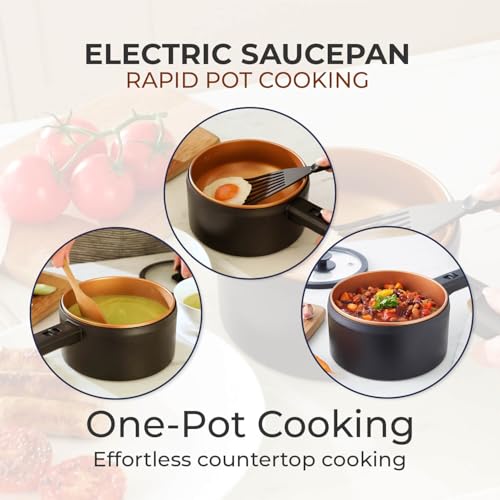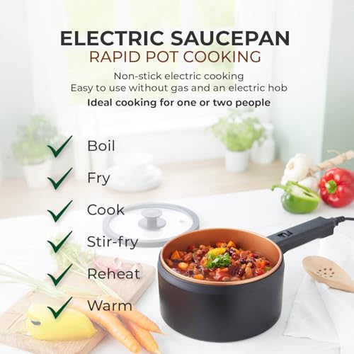 Coopers Of Stortford Hot Pot Electric Saucepan, Mini Electric Skillet Portable Nonstick Sauté Pan with Power Adjustment, Rapid Ramen Cooker Travel Multicooker Electric Pot for Steak/Soup