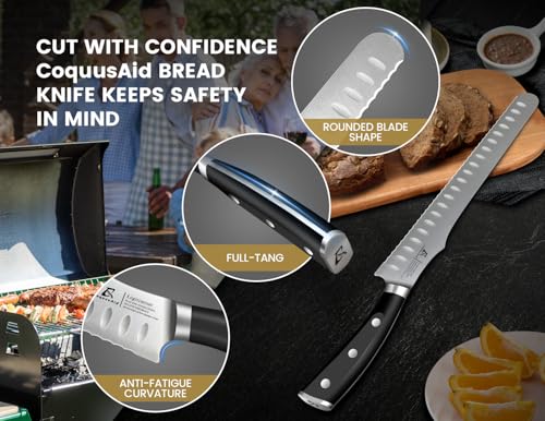 CoquusAid Bread Knife for Homemade Bread, 10.6 Inch Multifunction Serrated Knife, Razor Sharp Slicer, Forged High Carbon German Steel, Full Tang Ergonomic Handle Design for Sourdough Turkey Fruit
