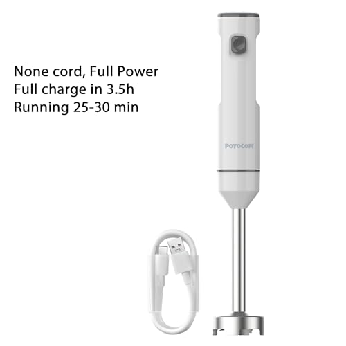 Cordless Variable Speed Hand Blender, POYOCOM Immersion Blender handheld Rechargeable, with Type-C Cable, Egg Whisk, for Smoothies, Milkshakes, Puree Baby Food and Soups – White