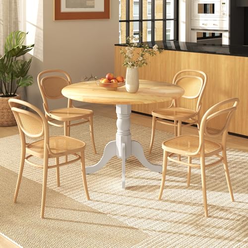 • 【Solid Wooden Structure】Crafted with natural rubber wood, the round dining table is solid, not easy to crack and deformation-resistant for prolonged lifespan. Moreover, been through exquisite workmanship, it is smooth and burr-free. Note: Our tabletop is made up of two pieces joined together, not a single piece.