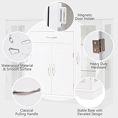 COSTWAY Buffet Sideboard, Wooden Storage Cabinet with Adjustable Shelves and 2 Glass Doors, Server Pantry Cupboard for Kitchen Living Dining Room (White)