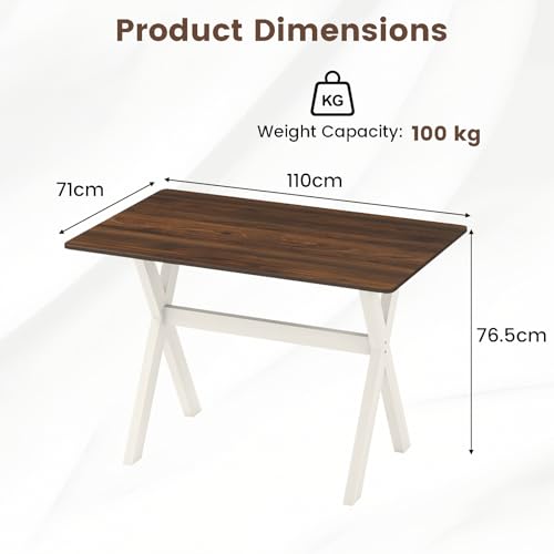 COSTWAY Dining Table, 110 x 71cm Rectangular Kitchen Table with Wood Grain Texture Tabletop & X-shaped Frame, Wooden Console Dinner Table for Home Dining Room Restaurant (Walnut)