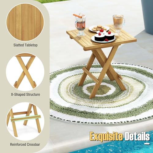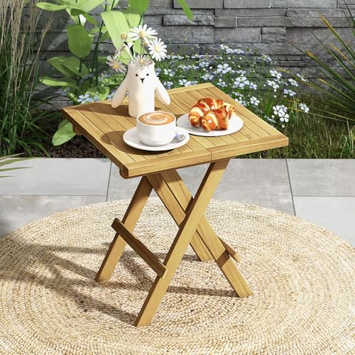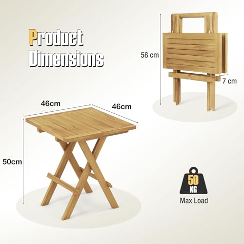 COSTWAY Folding Side Table, Solid Teak Wood Small Garden Coffee Table, Slatted Hardwood Indoor Outdoor Foldable End Bistro Snack Table for Patio, Balcony, Deck and Porch (Square, 46x46x50cm)