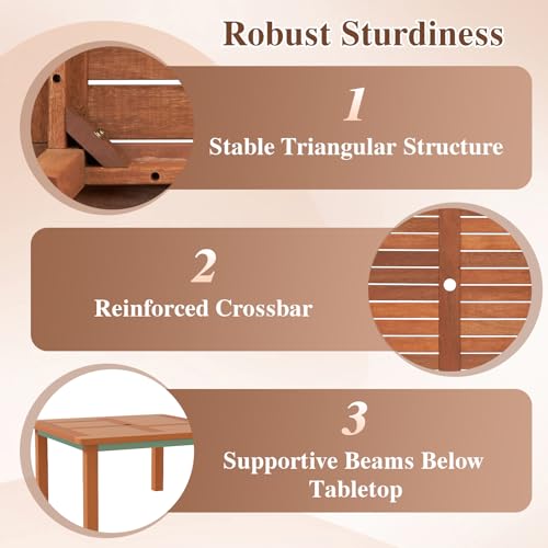 - 【Built-in Umbrella Hole】Featuring a 5cm hole, this garden coffee table is ready to accommodate most umbrellas, allowing for shaded relaxation in sunny days. Note: umbrella base not included, and is required for wind stability.