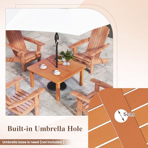 COSTWAY Garden Coffee Table with Umbrella Hole, Hardwood Outdoor Side Table with Slatted Top, Square Patio Bistro Snack Tea Table for Balcony, Backyard and Poolside, 90 x 90 x 47cm