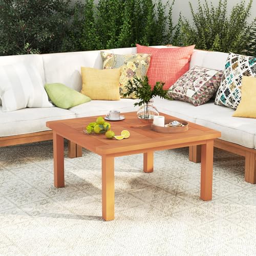 - 【Solid and Natural Materials】Crafted from solid wood with teak oil finish, our outdoor coffee table completes your outdoor space with a touch of natural charm. Its wear-resistant and anti-fading properties provides enduring allure, perfecting it for long-term use. Note: Surface of wood furniture becomes drying and fading due to sun exposure and temperature variations both indoors and outdoors. Please maintain on a regular basis by applying the wood polish oil on the soft cloth, then use cloth to wipe the surface of furniture.