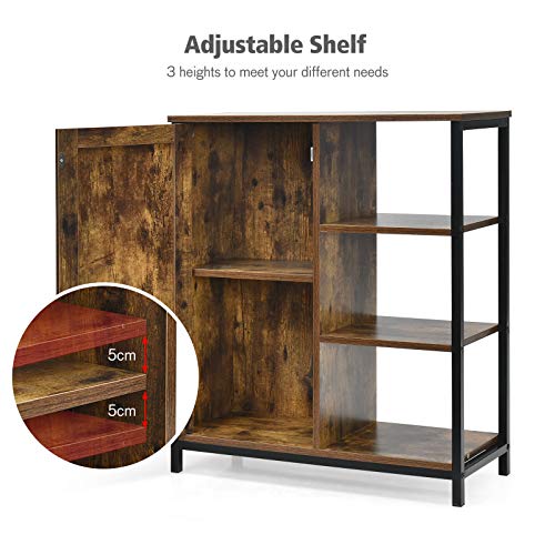 COSTWAY Industrial Storage Cabinet, Freestanding Wooden Buffet Sideboard with Doors, Adjustable Shelves & 3-Tier Side Rack, Home Kitchen Dining Room Display Organiser Cupboard (1 Door, 70x30x81cm)