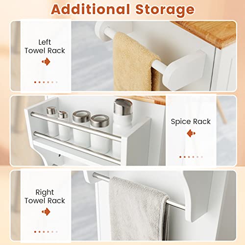 - 【Ample Storage Space】 This large mobile kitchen island cart comes with 1 wide countertop, 1 multi-purpose spice rack, 1 side towel bar, 2 enclosed cabinet with adjustable shelves and 3 deep drawers for easy storage. So you can well organize your wines, glasses, tableware, spice jars, food or kitchen appliance.