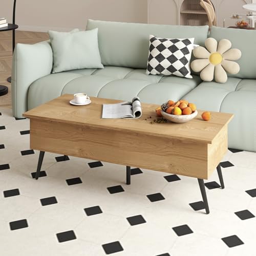 - 【Reliable Construction】Supported by 5 metal legs with non-slip foot pads, this lift top coffee table boasts great sturdiness and stability. The strong build supports up to 75kg (table surface when not lifted), making it a reliable centerpiece in any room.