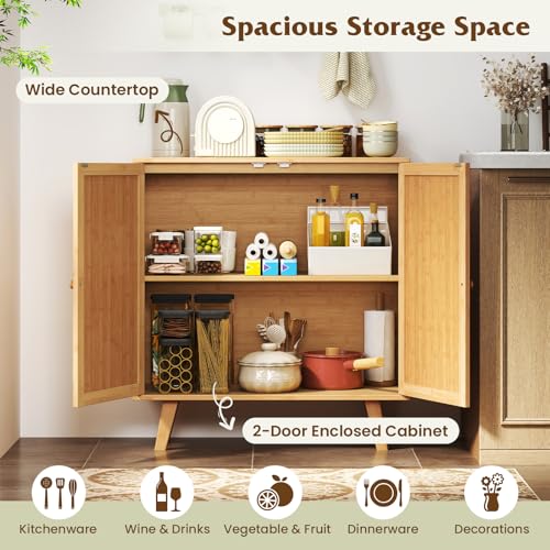 - 【Sturdy Bamboo Construction】 Made from sustainable bamboo, this buffet cabinet offers both strength and natural beauty, ensuring longevity in any room. The non-slip foot pads on the support legs protect the floor and enhance stability.