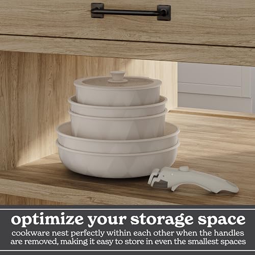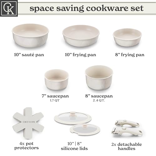 Country Kitchen 13 Piece Pots and Pans Set – Safe Nonstick Kitchen Cookware with Removable Handle, RV Cookware Set, Oven Safe (Diamond, Cream)