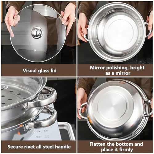 - ✨ Durable and Easy to Clean – Crafted from high-quality, mirror-polished stainless steel, this food steamer 3 tier is not only robust and long-lasting but also dishwasher safe, making it incredibly easy to clean and maintain. Its superior construction ensures durability, so you can rely on this steamer for years to come, whether you're preparing meals for your family or hosting dinner parties.