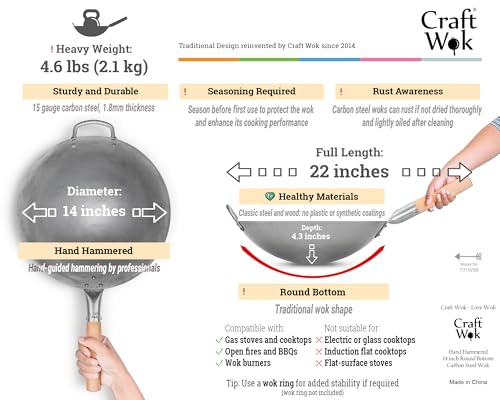 - Round Bottom Heavy 14 Inch 1.8mm carbon steel wok, commercial grade. Original design by Craft Wok since 2014, proven quality over the years. Traditional chinese wok pan with round bottom.