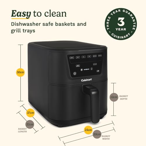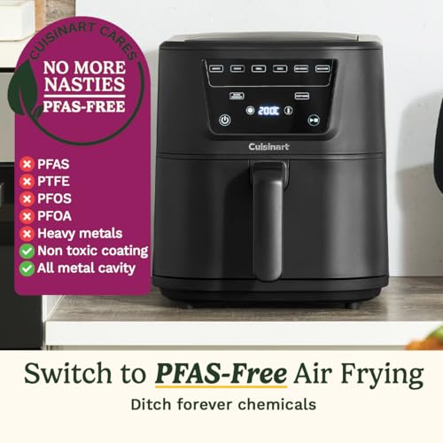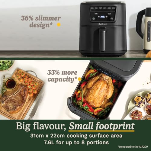 Cuisinart XL 7.6L Single Air Fryer, Compact Max 7-in-1 – PFAS Free – Chemical free cooking – 36 Percent slimmer footprint – Air Fry, Roast, Grill, Bake, Dehydrate, Max Crisp, Keep Warm-Dishwasher Safe