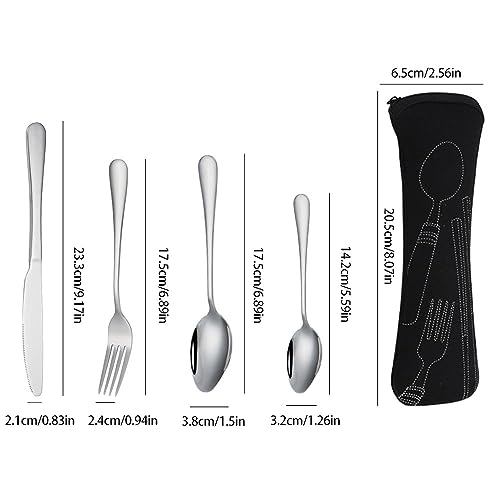 - 【What You Will Get】Stainless steel cutlery set includes spoon X 1, teaspoon X 1, fork X 1, knife X 1, with mini zipper case for flatware and cotton flannel bag, easy to carry, nice for traveling camping and other outdoor party.