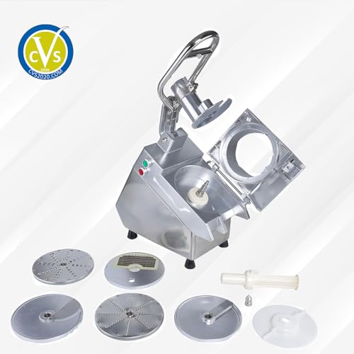 CVS Commercial Vegetable Cutter Electric Machine Veggie Slicer Food Processor 750W 5 Blades 300RPM Commercial Vegetable Chopper (3 Slicing Discs, 2 Shredding Discs) Slice Thickness (2~10mm)