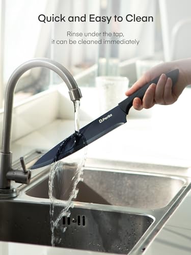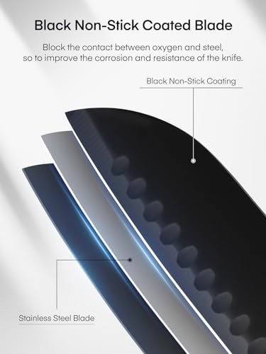- Premium and Sharp Knife Set: Black Non Stick coated stainless steel blade are crafted from superior high carbon stainless steel for against corrosion and rust. Each knife is sharp and durable and provides precisice cutting results