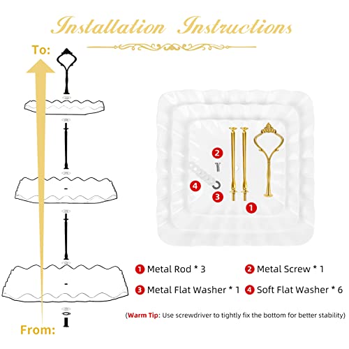 - 【Easy Installation】This cupcake holder is really easy to assemble just by your hand. Of course, we recommend using screwdriver to tightly fix bottom for better stability in long term use