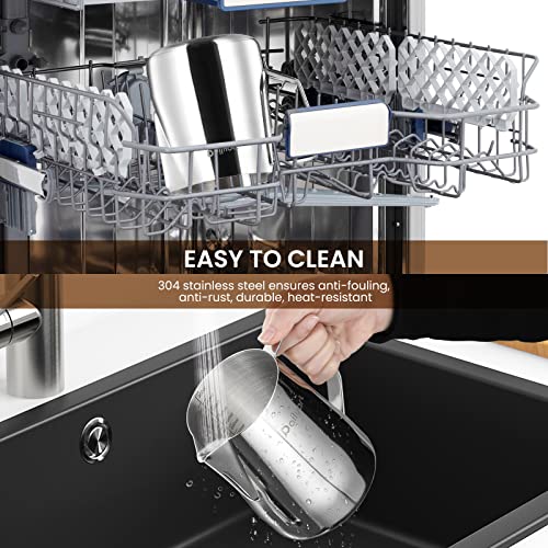 - ☕【304 STAINLESS STEEL MATERIAL】Unlike other manufacturers, our milk frothing jug are made of high quality food grade 304 stainless steel, which is heat resistant and durable. The 0.7mm thickness of the stainless steel milk jug offers excellent temperature control and thus prevents the milk from burning. Easy to wash, wash it under warm soapy water just in a moment, dishwasher-safe.