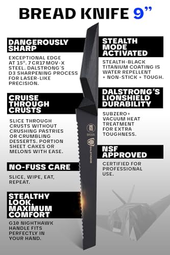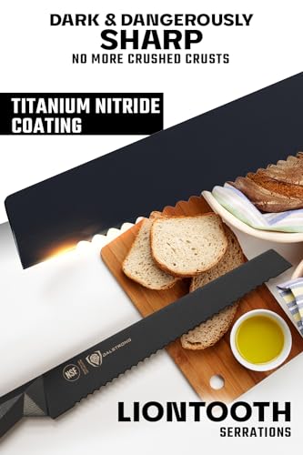 DALSTRONG Bread Knife – 9" (23 cm) – Shadow Black Series – Black Titanium Nitride Coated HC Steel – Sheath – NSF Certified