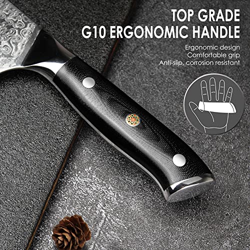 Damascus Fillet Knife, 14.5 cm Fish Knife Made of 67 Layers of VG10 Damascus Steel, G10 Handle, Gift Box, Filleting Knifes use for Home Restaurant Kitchen