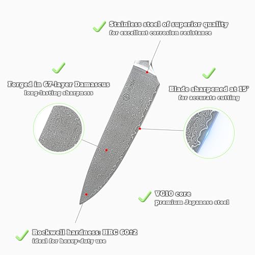 - Quality Guarantee – Enhance your experience with our professional Japanese Damascus kitchen knives. Designed for precision and durability, they make every kitchen task easier. Order now by clicking "Add to Cart."