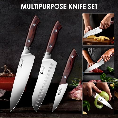 DDF iohEF Knife Set 3 Pieces, Sharp Kitchen Knife Set Professional Chef Knife Set for Kitchen Japanese Stainless Steel Cooking Knives with Ergonomic Pakkawood Handle
