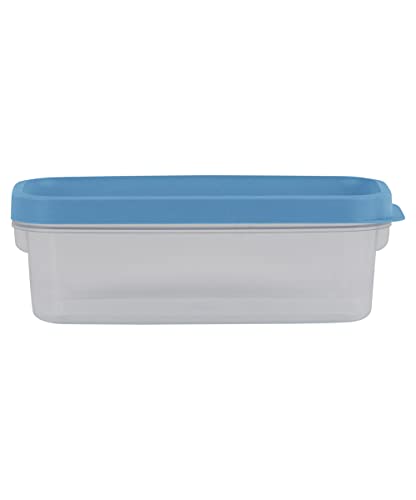 Decor Pantry Stack & Store Oblong Airtight Food Storage Container With Easy Peelable Lid Stackable Pantry Storage Containers & Food Storage Labels – Clear/Blue – 550ml