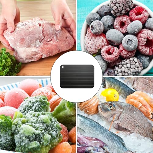 - VERSATILE USAGE: This thawing board is suitable for defrosting various types of frozen foods, including pork, chicken, fish, minced meat, steak, sausage, ribs, prepared meals, and other frozen items.