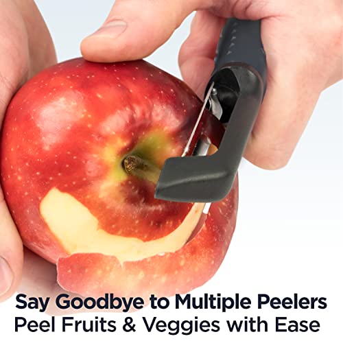 - ✅ SMOOTH, FAST, EFFICIENT PEELER – The potato peeler comes with smooth sharp dual blades that produce thin and even peel. The precision swivel design glides around bumps and grooves quite effortlessly.