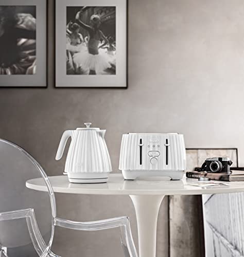 De'Longhi Ballerina Toaster, 4 Slot Toaster, Reheat, 5 Browning Settings, Defrost and Cancel Functions, Pull Crumb Tray, CTD4003.W, 1800W, UK PLUG, White