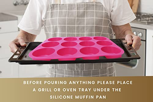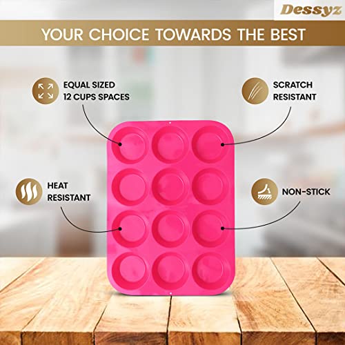 Dessyz Muffin Trays for Baking 12 Cups – Premium Silicone Non-Stick Cupcake Tray for Yorkshire Pudding, Baked Goods & Sweets – Dishwasher Safe Muffin Tin – 33 x 24.6 x 3cm (Pink, 1 Pack – 12 Cups)