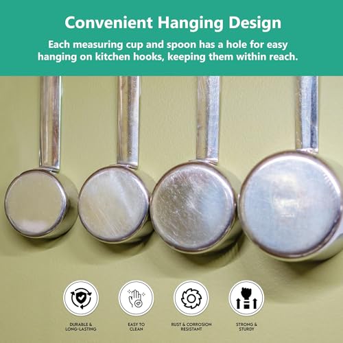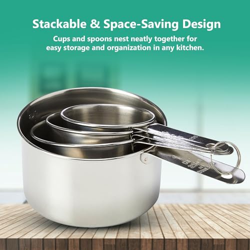 Dexam Stainless Steel 8-Piece Measuring Cups & Spoons Set – Premium Kitchen Tools for Baking & Cooking, Perfect for Dry & Liquid Ingredients, Durable, Rust-Resistant, and Easy to Clean