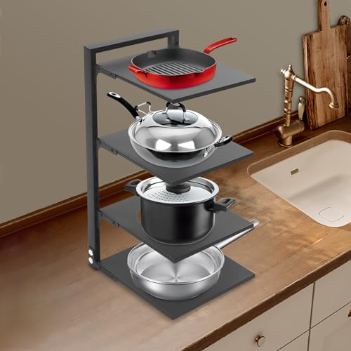 - Humanized Design: Each tier of the pots and pans organiser is removable, allowing you to easily adjust its height and capacity according to your requirements.