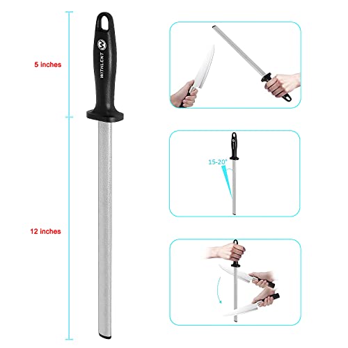 Diamond Sharpening Steel – 12 inch Knife Sharpener for Master Chef, Ideal for Kitchen Knife, Cooking Knife, Butchers and Japanese Knife, Home Gourmet Blade Sharpening Stick
