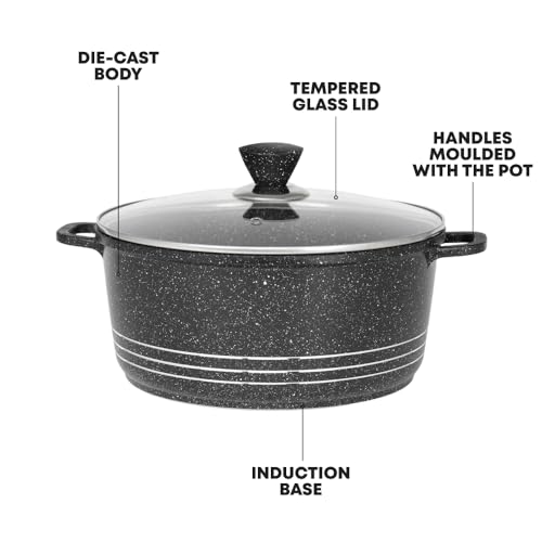 Die Cast Stockpot Set 4 Piece Non Stick Cooking Pot Casserole Set Aluminium Induction Stock Pot with Lids Tempered Glass 20cm 24cm 28cm 32cm Induction (Black)