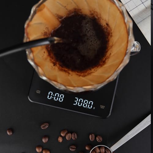 - Digital Coffee Scale with Timer Helps you better control extraction time and weight, and enjoy the aroma of coffee. You can touch TIMER button to cook and time coffee to ensure the consistency of each cup of coffee. Timing up to 99 minutes 59 seconds.