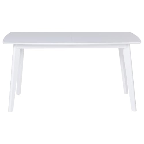 Beliani Rectangular Extending Dining Table 150/195 x 90 cm in White Solid Wood – Sanford Collection