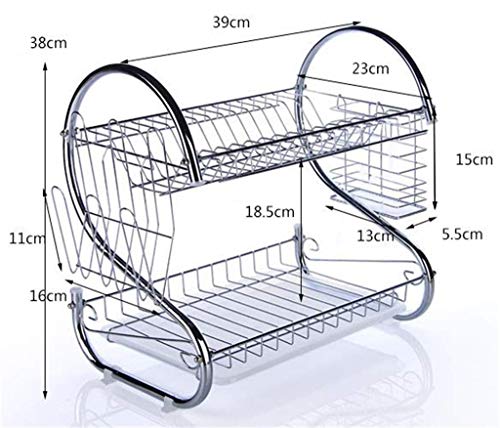 Dish Drying Rack Draining Rack with Cutlery Holder Kitchen Supplies Drain Rack Double Stainless Steel Kitchen Rack Drain Bowl Rack Cutlery Rack Dish Rack Cutlery Rack