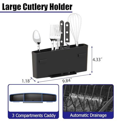 - 【Large Cutlery Caddy】Our expandable dish drying rack for kitchen counter comes with a cutlery holder divided into 3 slots to organize forks and spoons separately, keeping the flatware tidy and neat.