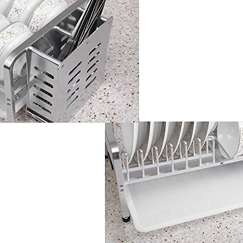 - Scolapiatti per stoviglie, scolapiatti di grande capacità nella parte superiore, vassoio da cucina con vassoio di drenaggio inferiore, tutti dotati di gomma morbida antiscivolo e antigraffio per un'eccellente protezione delle stoviglie.