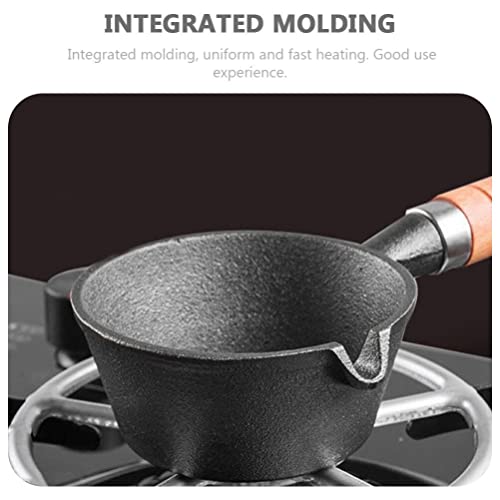 DOITOOL Cast Iron Sauce Pan Butter Warmer Iron Oil Heating Pot with Wooden Handle, Cast Iron Cookware Pot Melting Pot