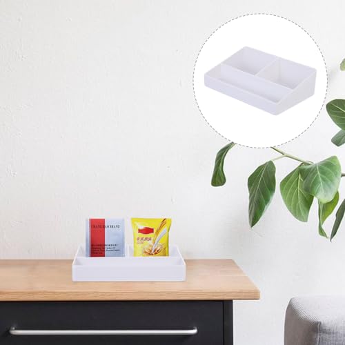 DOITOOL Coffee Bar Box : Coffee Station Organizer, Countertop Sugar Holder, Tea Bags Storage Bin, 3 Compartment Breakroom Condiment Organizer Sugar Sweetener for Hotel Restaurant (White)